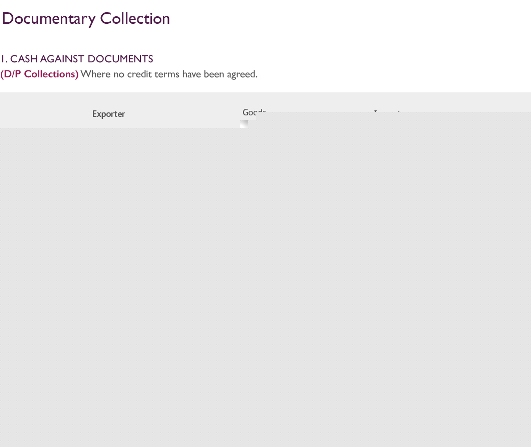 Collections do not provide any guarantee of payment, and are therefore more widely used where the Importer and Exporter have established a good trading relationship. The Importer agrees to pay for goods only upon receipt of documents evidencing the shipment of the goods by the Exporter.