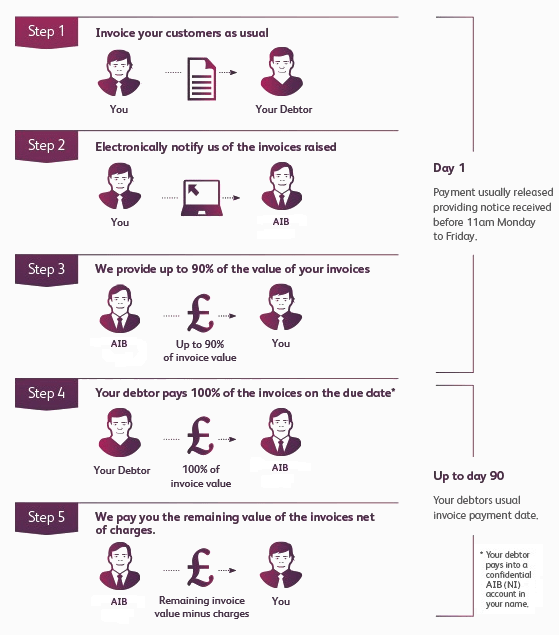 - On your request, AIB (NI) will forward agreed prepayment of up to 90% of funds tied up in unpaid debtor invoices